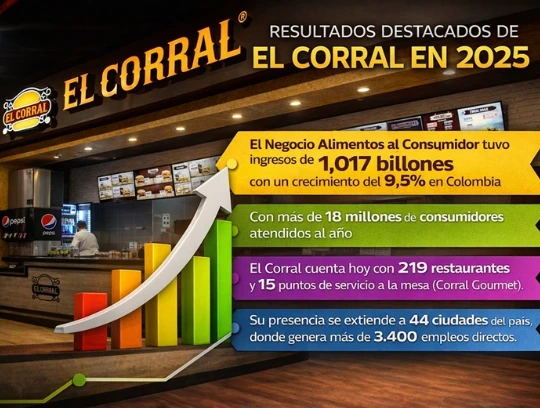 En el caso de El Corral, el año ratificó su papel como una unidad de negocio de Alimentos al Consumidor, una de las más visibles de Grupo Nutresa. Aunque esta operación integra otras marcas como Corral Gourmet, Papa John’s, Leños y Carbón y Beer Station, la escala comercial, la cobertura y el liderazgo de El Corral permiten concluir que la marca explica una parte sustancial de ese negocio en Colombia.
