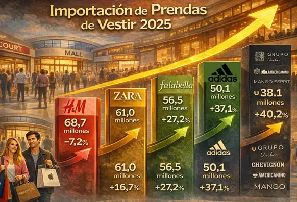 EL 42% DEL VESTUARIO IMPORTADO PROVINO DE CHINA EN 2025: GRUPO URIBE, ADIDAS, FALABELLA Y ZARA CRECEN A DOBLE DíGITO