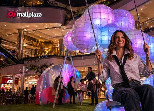 Como materialización de esta estrategia, Mallplaza introduce por primera vez en Colombia “The Cloud Swing”, una instalación interactiva de escala internacional que ha recorrido escenarios como el festival Burning Man y ciudades globales como Barcelona y Sídney. Más allá de su atractivo visual, la propuesta encierra un concepto potente: la instalación solo alcanza su máximo nivel de luz y color cuando dos o más personas interactúan simultáneamente.