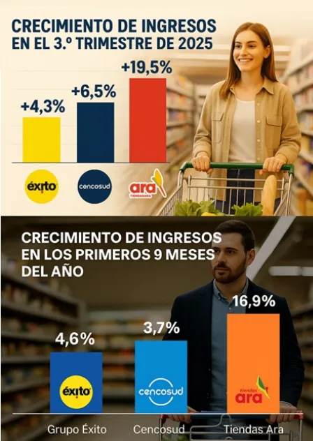 GRUPO ÉXITO CONSOLIDA SU RENTABILIDAD, CENCOSUD AJUSTA SU ESTRATEGIA Y ARA ACELERA SU EXPANSIóN EN 3T 2025